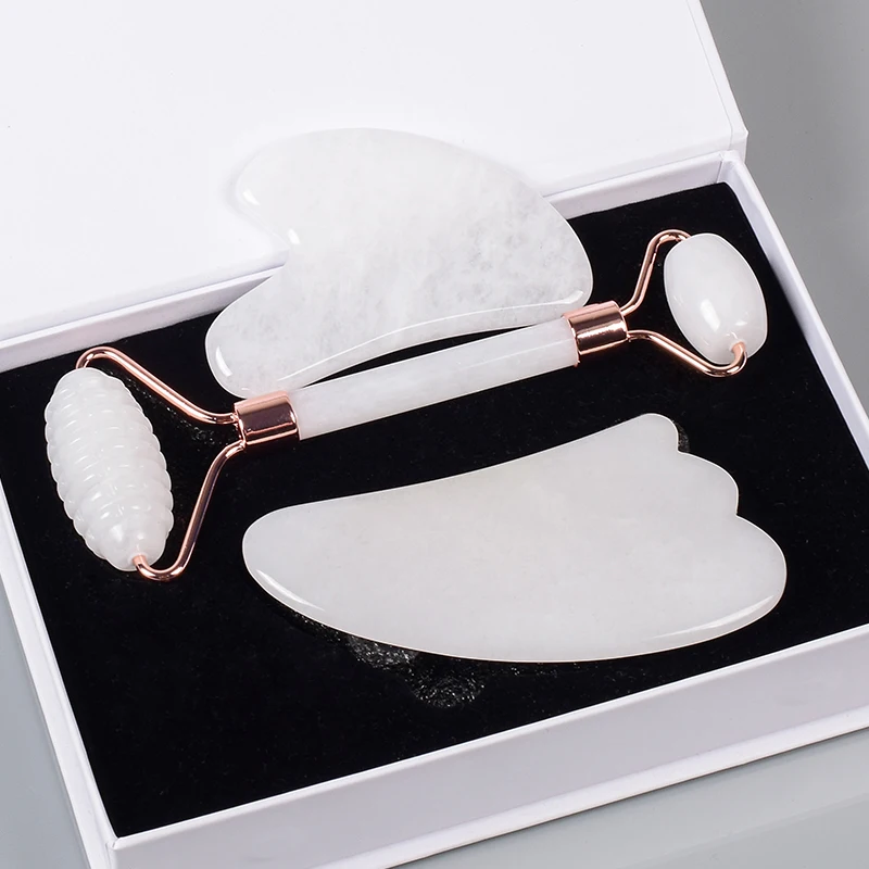 White Jade Face Care Tool Sawtooth Facial Roller Gua Sha Sets Natural Stone Crystal Massager Health Skin Detox Massage Fifting
